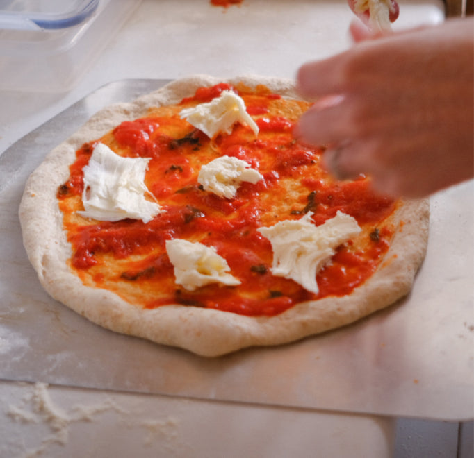 It’s a balance of time and quantity. To ensure our dough balls are great every single time, we follow the same secret blend of flours and malts, add water, yeast or our sourdough starter, and a pinch of salt. Then we give it time. 48 hours in fact. This develops our unique flavour, breaks down enzymes making it easier to digest and produces a strong, crisp base along with a light and airy crust.